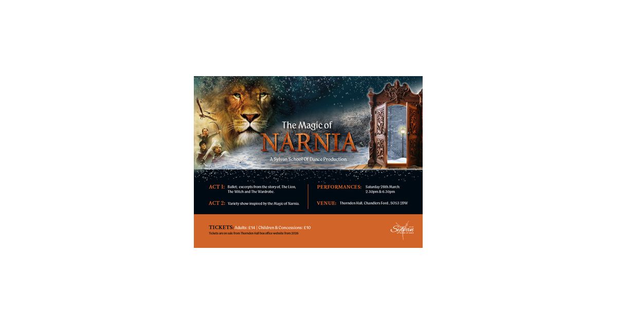 Step through the wardrobe and into a world of wonder with Sylvan School of Dance’s spectacular new production, The Magic of Narnia, taking place on Saturday 28th March 2026. Inspired by the beloved tale, this enchanting performance brings to life the snow-covered forests, mystical creatures, and timeless battles between good and evil through the power of dance.